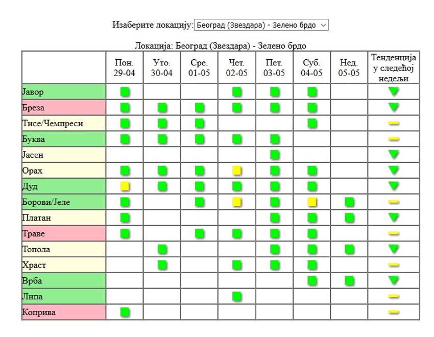 Naime, zbog ovakvih vremenskih uslova, koji možda nisu baš karakteristični za početak maja, došlo je do znatnog pada koncentracija polena drveća i trava u vazduhu, te spasa za alergične.