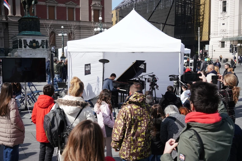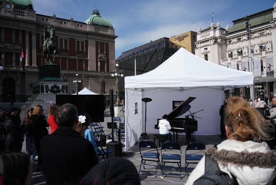 U periodu od 12 do 18.30 časova, na pet punktova sa klavirima koji će se nalaziti na Trgu republike, oko spomenika knezu Mihailu, učenici beogradskih osnovnih i srednjih muzičkih škola naizmenično će javno izvoditi kompozicije klasične muzike.