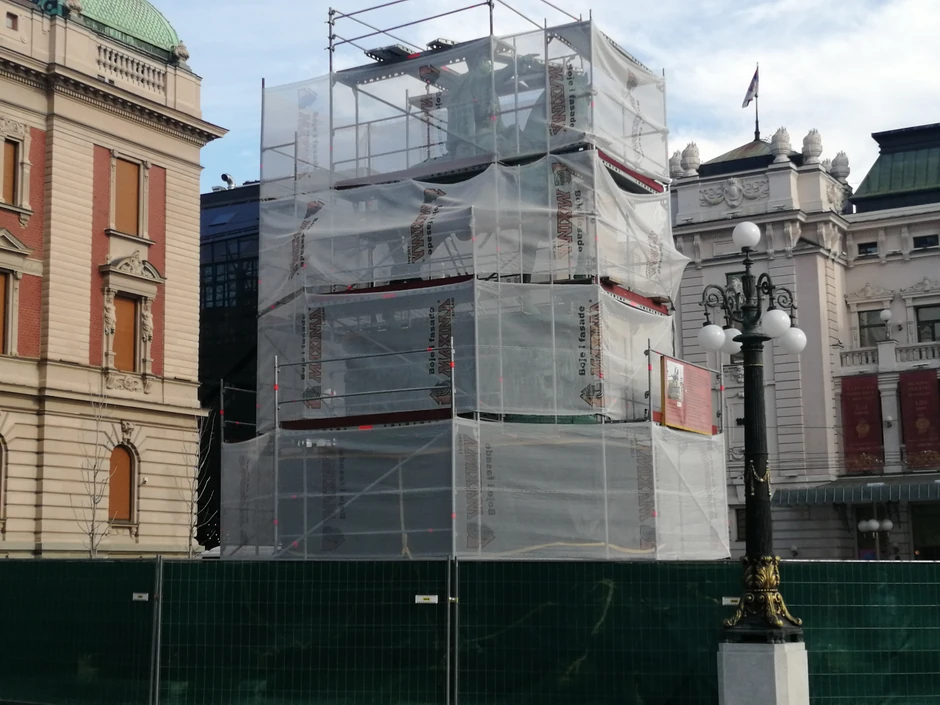 Ko je danas prošao Trgom republike mogao je da vidi kako je KNEZ MIHAILO SAKRIVEN