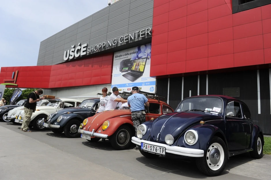 Ljubitelji Volksvagenovih modela danas su ispred TC Ušće imali priliku da uživaju u izložbi "buba" automobila.