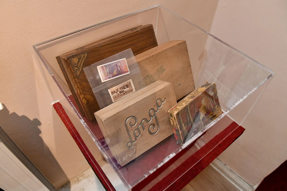 Vlasnik muzeja pokazuje nam stare kutije za čokoladu, proizvodnja iz Novog Sada, sa žigom Kraljevine SHS koje nema niko u Srbiji, ali i priča o istoriji današnjeg "Soko Štarka“.