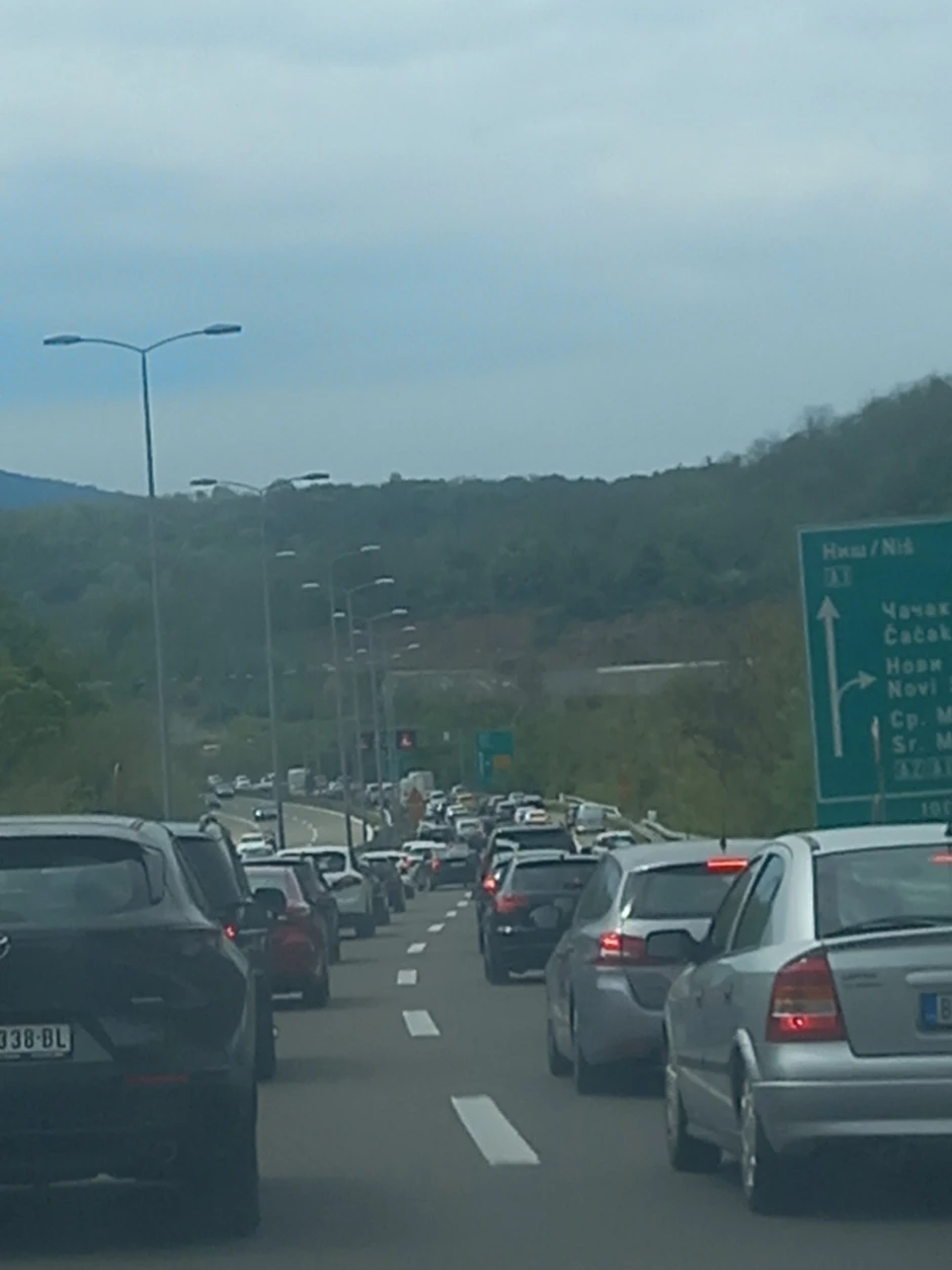 Najveća gužva ,nastala je trenutno na izlazu iz Beograda ka Nišu gde se stvorila kilometarska kolona kod table za Bubanj potok.