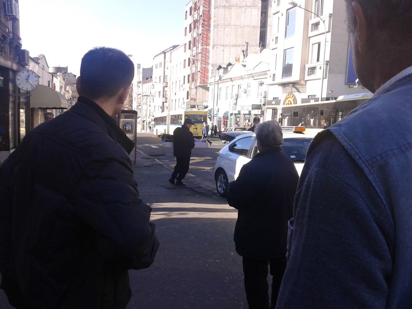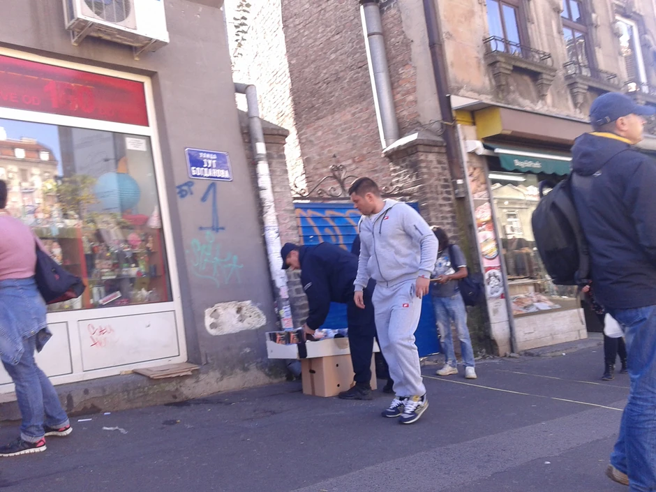 Ulična prodavačica, koja je na toj tezgi prodavala čarape, stajala je po strani, dok su ostali prodavci koji su bili u blizini počeli da skupljaju robu, u strahu da im roba ne bude oduzeta.