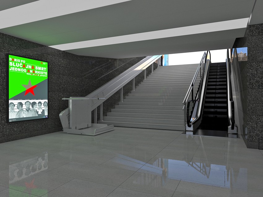 Ovde je planirana sanacija podnih i zidnih obloga, biće postavljene rampe za osobe sa invaliditetom, koje praktično nikada nisu ni radile, nove pokretne stepenice. Zidovi će biti prefarbani antigrafit bojom.