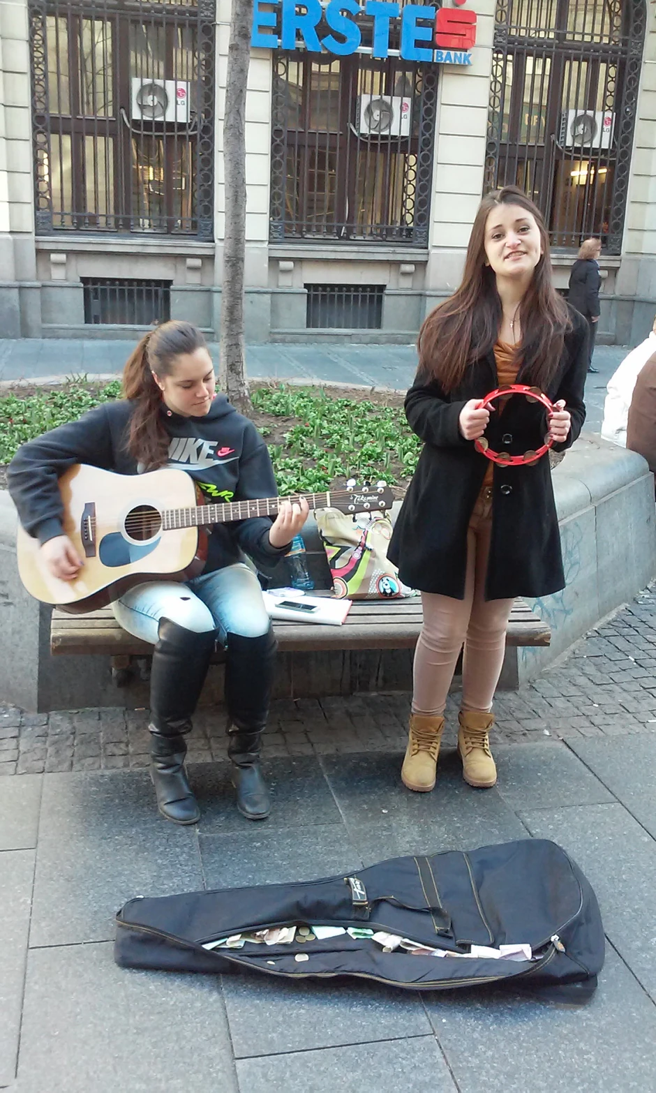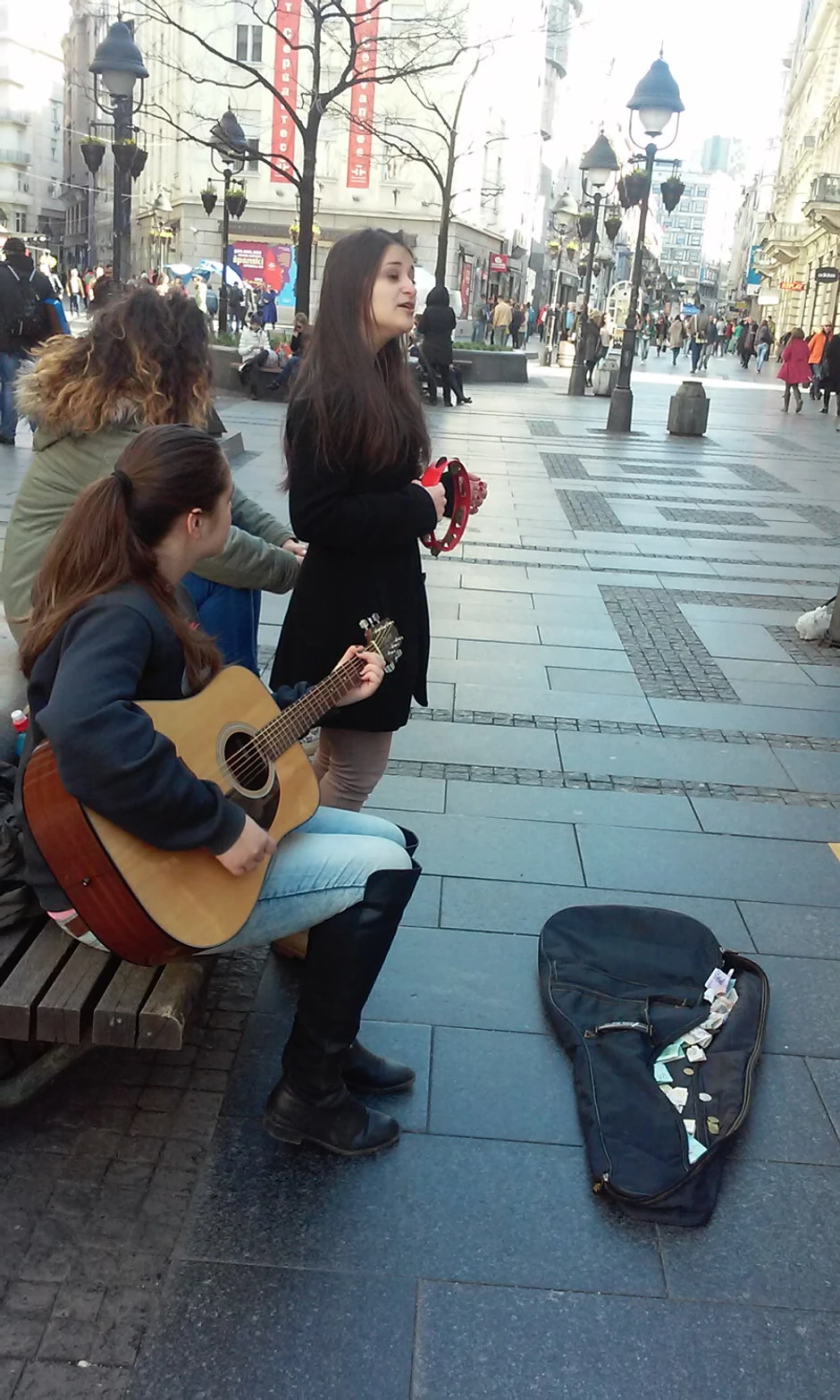 Obe volimo da pevamo i sviramo i na ovu ideju došle smo sasvim slučajno, pričaju srednjoškolke Mila i Katarina koje smo zatekli danas u Knez Mihailovoj ulici, dok se futrola gitare pred njima punila novčanicama. Upitane za motiv da nastupaju na ulici, devojke jednostavno kažu: “Sakupljamo novac za more”.