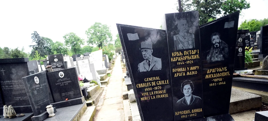 Parcela broj 27 na Centralnom groblju otkriva skoro pa neprimetnu nadgrobnu ploču sa slikama francuskog generala Šarla de Gola, Kralja Petra I Karađorđevića i vođe četničkog pokreta Dragoljuba Mihajlovića - Čiče, koja je podignuta na porodičnoj grobnici porodice Simikić.