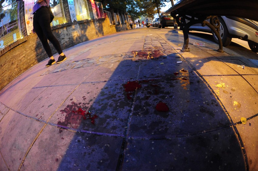 Na licu mesta ostala je lokva krvi, ali i nož kojim je beskućnik napadnut.