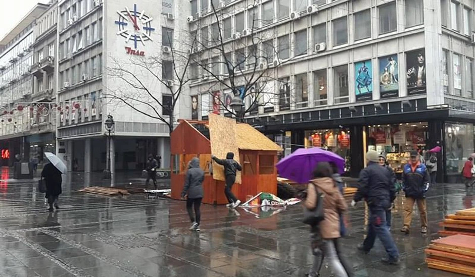 Trg otvorenog srca ugledao je svoj kraj što se moglo primetiti po vrednim radnicima koji su danas razmontirali kućice u Knez Mihailovoj ulici i na Trgu republike.