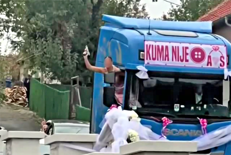 Pucanje iz vatrenog oružja na proslavama zakonom je zabranjeno, ali i dalje nije retkost da se tako raduju na svadbama, krštenjima, ispraćajima... Ali ovo kako je jedna kuma iz Beograda došla na svadbu svoje drugarice - na šleperu, pa još kada je zapucala... prepričavaće se.