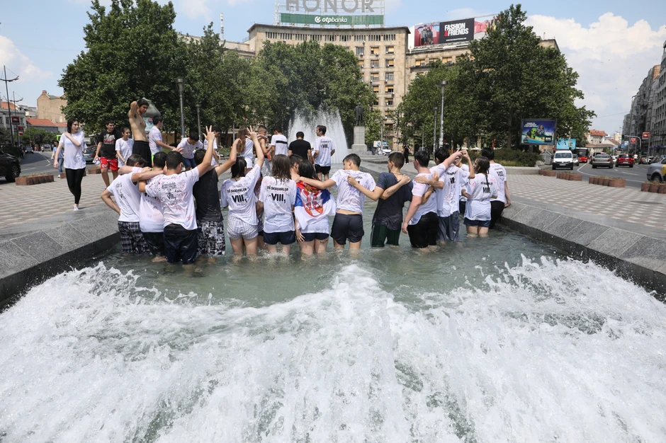 Naravno, po tradiciji, danas je u škoskim dvorištima veselije nego ikada! Muzika se čuje sa razglasa, svi pevaju, igraju, vesele se, grle se, ima tu i suza... a, naravno, u Beogradu je tradicionalno palo i kupanje u fontantama!