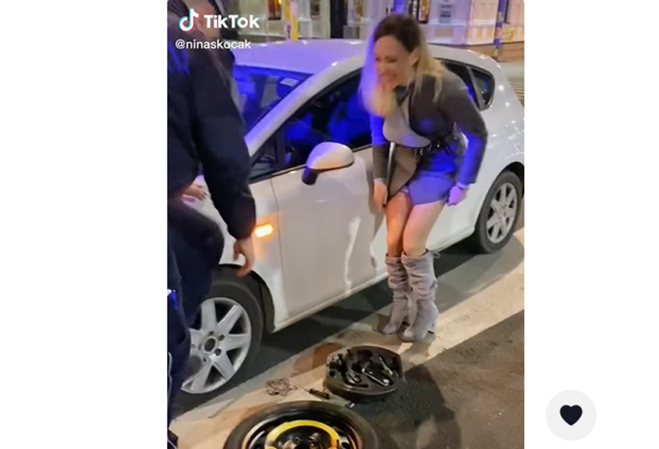 Lepoj i zgodnoj, plavokosoj Beograđanki pukla je guma na Slaviji, ali je pomoć ubrzo stigla - gumu joj je zamenio, ni manje niviše, nego jedan policajac.
