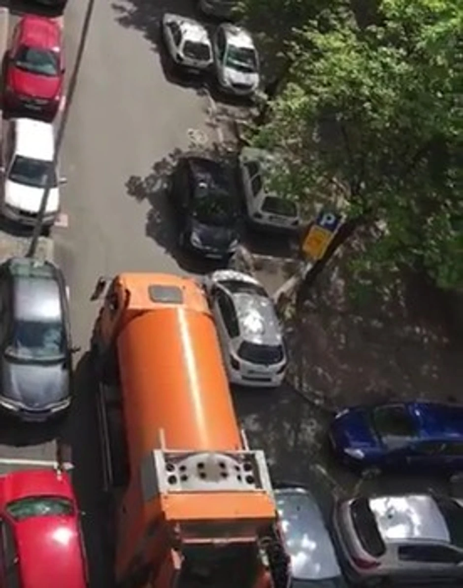 Kakav komunalni haos vlada u ovoj ulici, smeštenoj pored Skadarlije, najbolje svedoči snimak na kojem se vidi kako kamion "Gradske čistoće" vozi slalom pored nepropisno parkiranih vozila na ulici.
