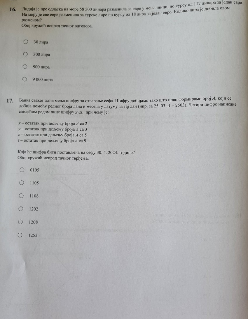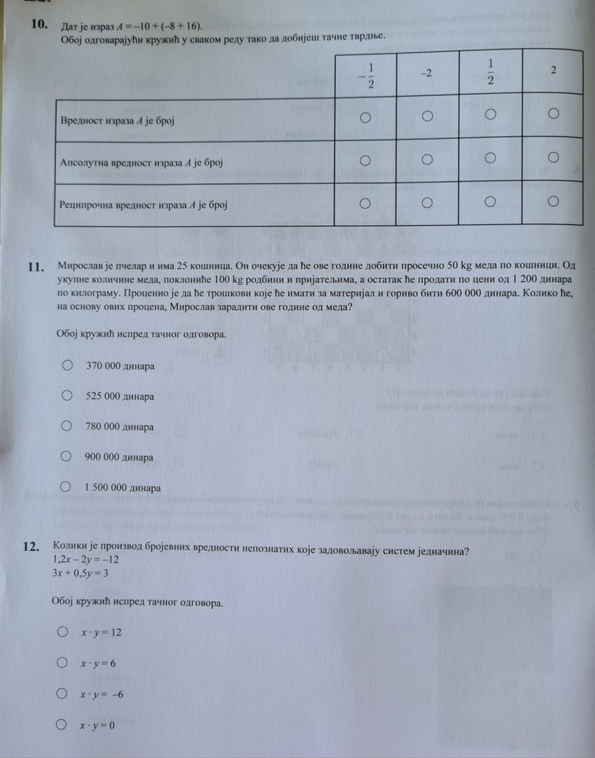 Na ovom linku možete da pogledate rešenja testa iz matematike.