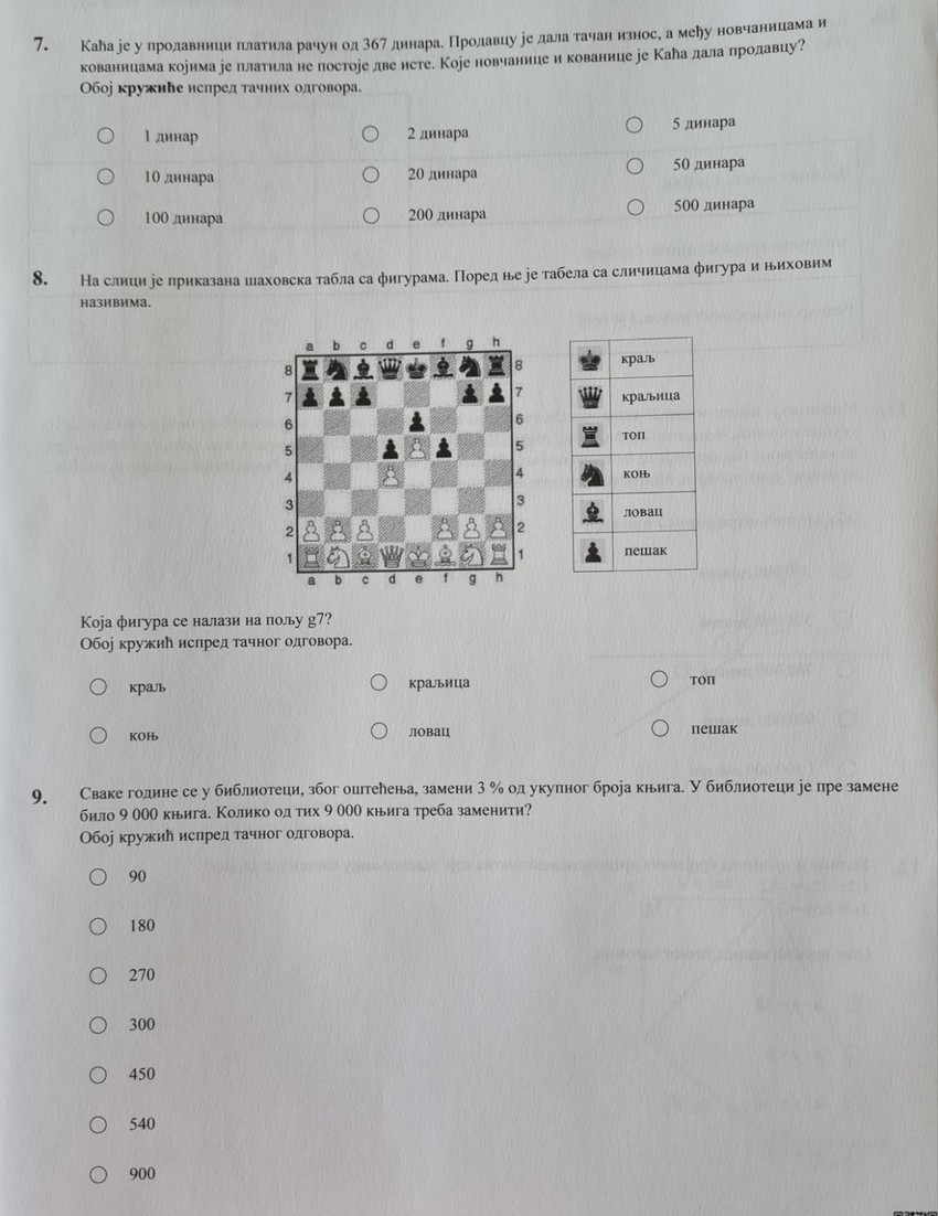 Širom Srbije danas su učenici osmog razreda osnovnih škola radili završni test iz matematike na moj maturi. Zadatke su masovno okarakterisali kao teže, a evo kako su izgledali. Da li biste vi znali da ih rešite?