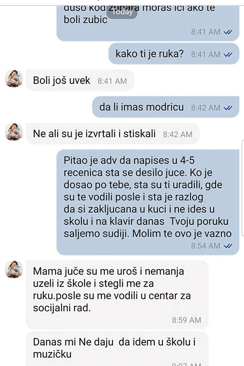 "Blic" je došao do prepiske u kojoj se devojčica žali majci Marijeti Savić da joj otac i stric ne dozvoljavaju da jede.