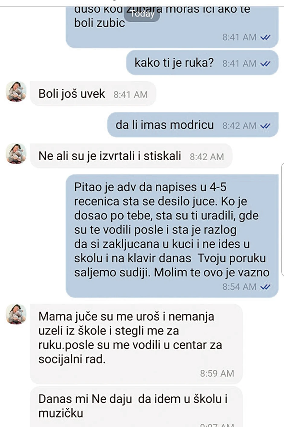 Osim ovog slučaja zanemarivanja, K. P. je majku obaveštavala i kada je otac Uroš P. odbijao da je vodi kod lekara i zubara, iako je trpela bolove.