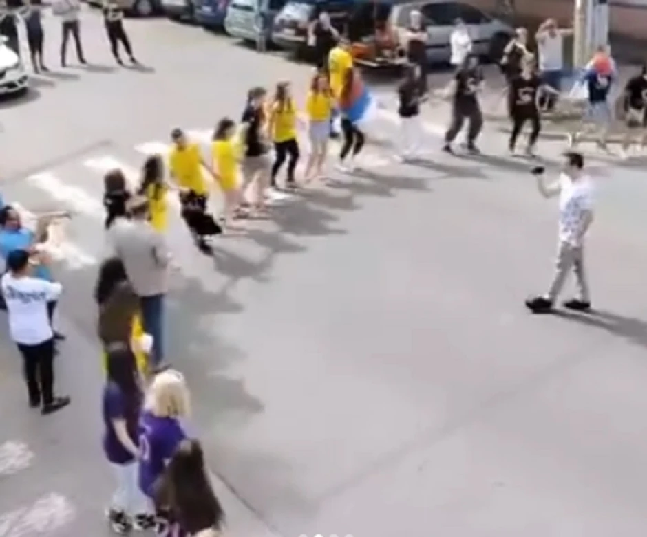 Maturanti su razvili srpske trobojke, a osmaci jedne škole celu zabavu podigli su na "viši" nivo. Ogromno kolo zaigrali su duž celog kvarta, dok trubači stoje u sredini.