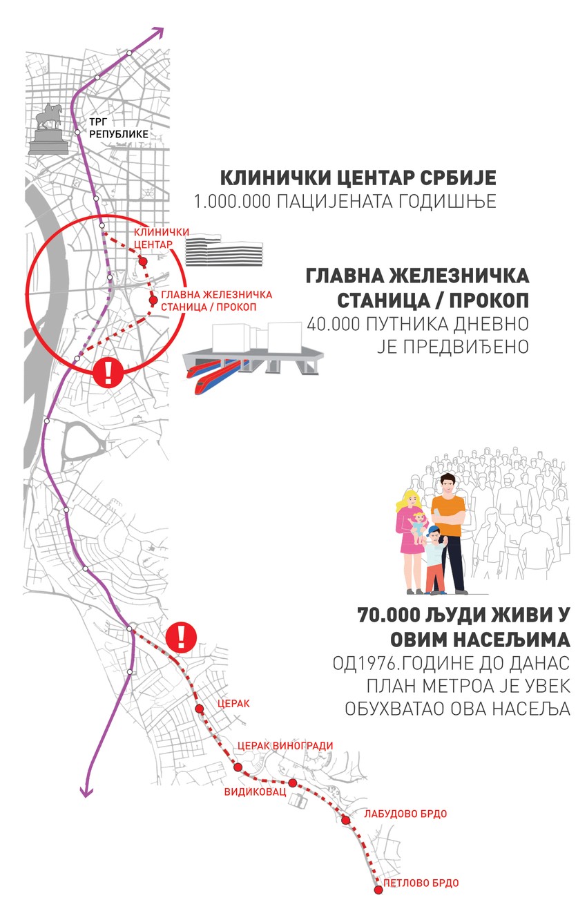 Naime, oni su se od prvog dana zalazagali da prva linija metroa nakon Beogradskog sajma, umesto na Mostarsku petlju, ide preko Prokopa i Kliničkog centra, a onda na već usaglašenu trasu ka Savskom trgu, odnosno Beogradu na vodi.