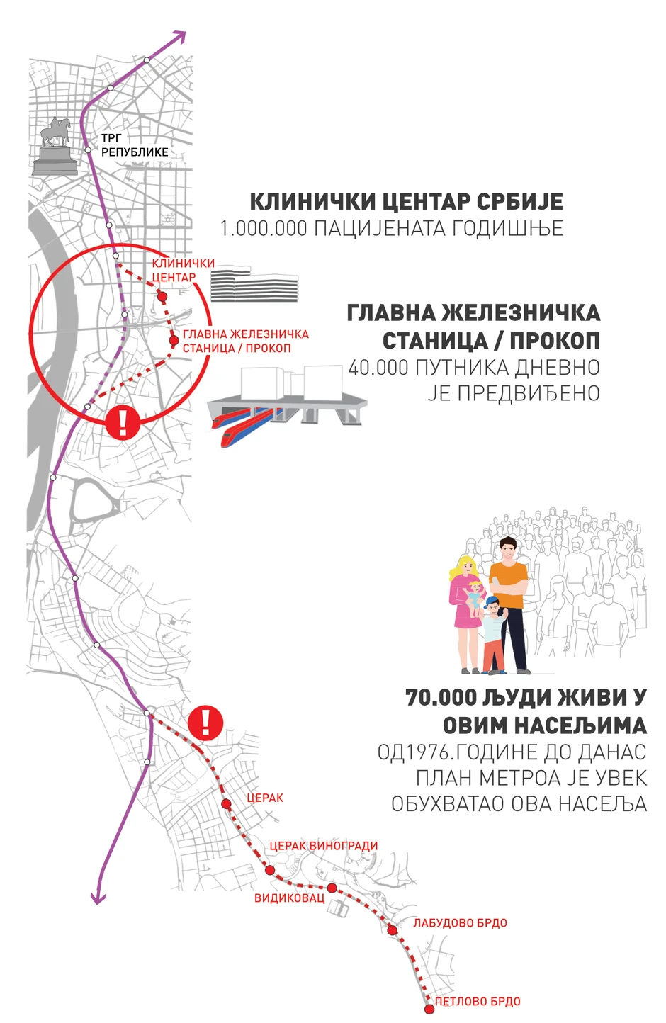 Podsetimo, prema aktuelnom planu, prva linija metroa trebalo bi da bude završena do 2028. godine, druga do 2030. ali nijedna od njih neće prolaziti preko Glavne železničke stanice, odnosno Prokopa. Povezivanje stanice "Beograd centar" sa onom na Novom Beogradu predviđeno je tek izgradnjom treće linije, a ona sigurno neće biti završena u narednih desetak i kusur godina.