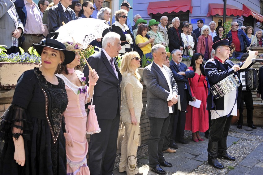 Pozdravljena gromoglasnim aplauzom i radošću okupljenih Beograđana i njihovih gostiju, zastava se zavijorila na aprilskom suncu i zaprkosila vremenu. A onda su stogodišnjom kaldrmom prošetali glumice i glumci kostimirani u skadarlijske dame, književnike, boeme sa neizostavnim šeširom, štapom i cvetom na reveru.