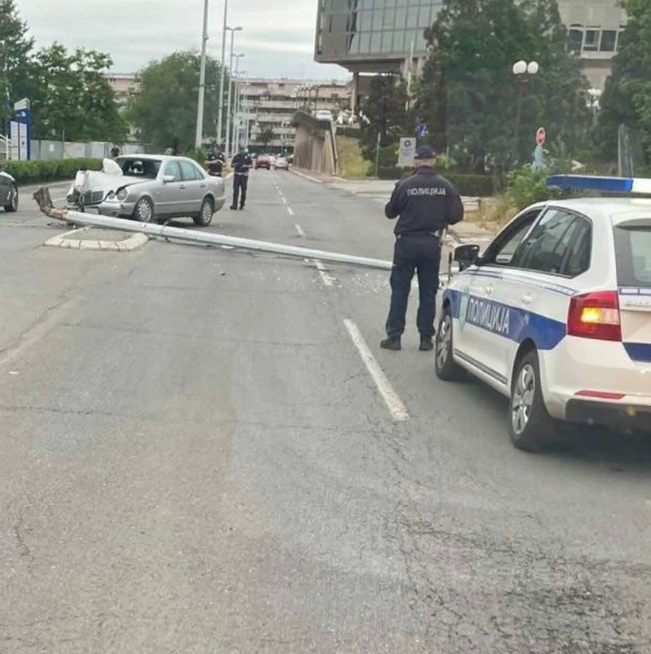 Na slici koji je objavila Instagram stranica Moj Beograd vidi se da je automobil marke "mercedes" udario u banderu, koja je od siline udarca pala.