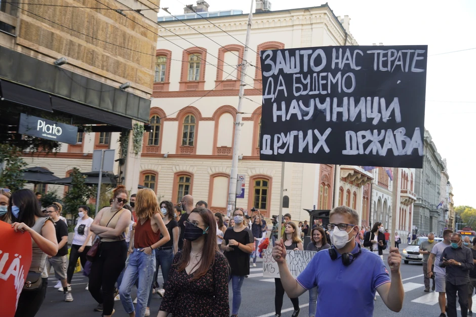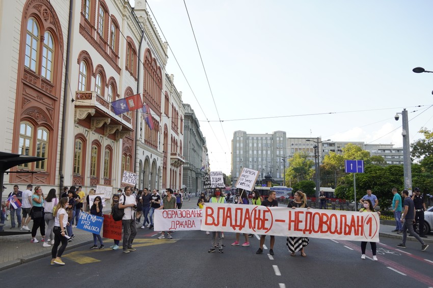 Nakon obraćanja, oni su krenuli u protestnu šetnju ka zgradi Vlade Srbije.