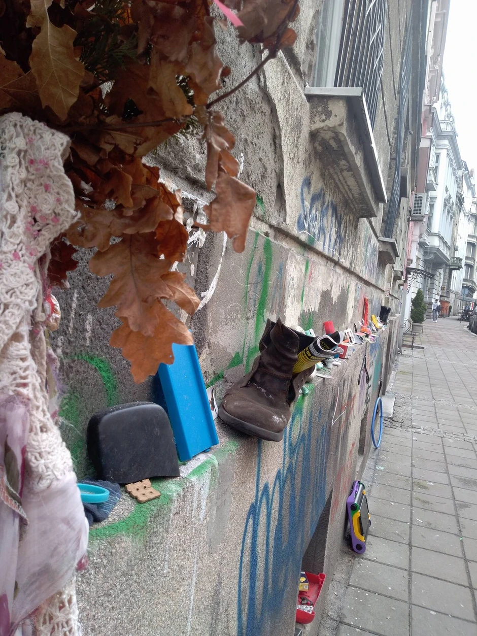 Zid jedne zgrade u Hilandarskoj ulici godinama unazad je mesto neobične "izložbe" čiju postavku čine stare lutke, prazne flaše i kutije za lekove, iznošene čizme i razni drugi odbačeni predmeti... Prolaznici sa čudom gledaju na te naslagane "eksponate", a priča o njima pojavila se nedavno i na jednom stranom portalu. Stanari ove i okolnih zgrada dobro poznaju čika Voju i kažu da je on zaslužan za ovo "umetničko delo" jer svaki dan obilazi pijace i nalazi odbačene stvari koje postavlja na zid, ali on tvrdi da nije autor ove čudne instalacije.