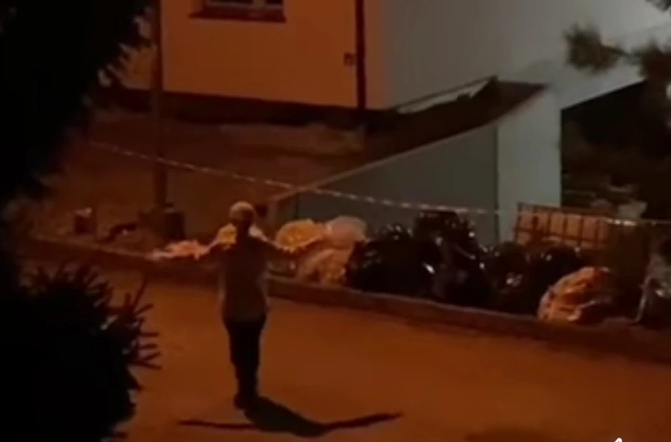 Nepoznata starija žena, u gluvo doba noći, izvodi bizaran ples nasred ulice, ispred stambenih zgrada - ova scena kao iz horor filma snimljena je sinoć na Zvezdari, u Beogradu.