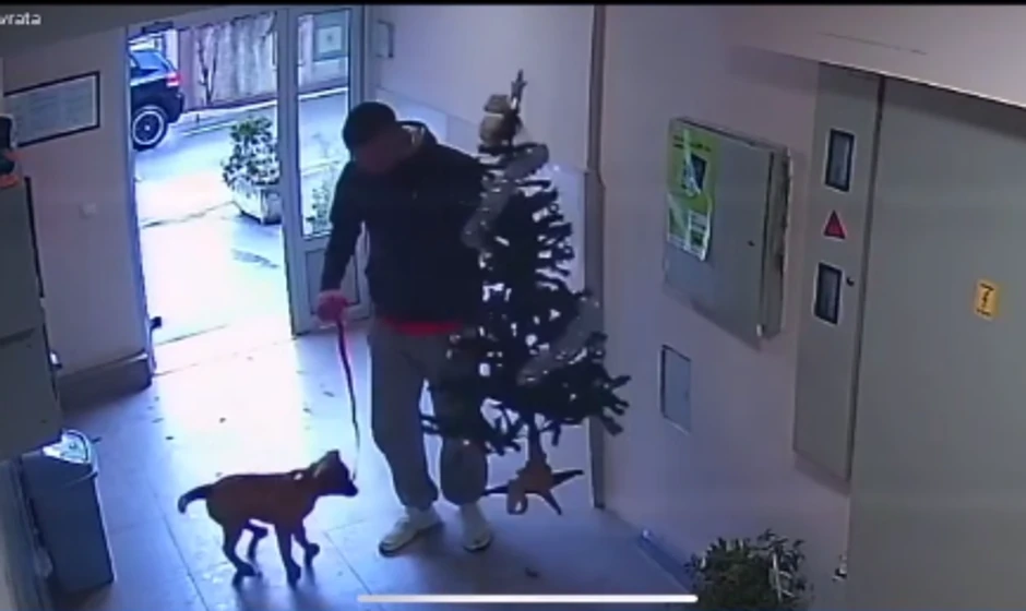 Skandalozan snimak objavljen je danas na društvenim mrežama i pokazuje čoveka kako šeta psa, a onda ulazi u jednu zgradu u Ulici vojvode Vlahovića i krade okićenu jelku! On mirno odlazi iz zgrade sa jelkom u jednoj ruci i povocem za psa u drugoj, a ljudi su šokirani njegovim postupkom.