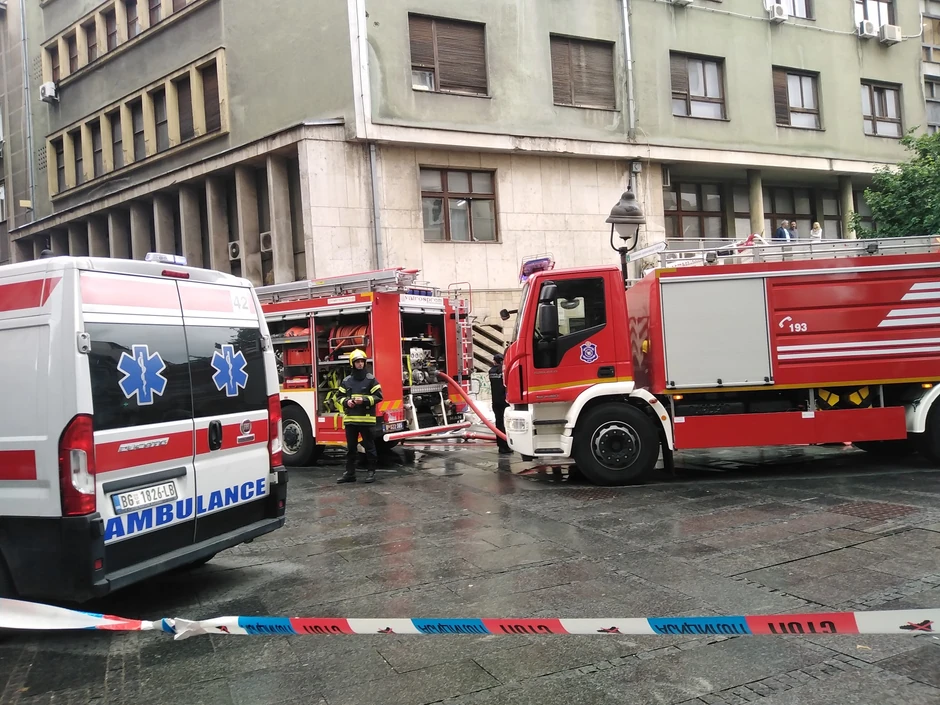 Dve vatrogasne ekipe su na terenu, policija je blokirala prilaz iz okolnih ulica, a povređenima se ukazuje pomoc na mestu dogadaja.