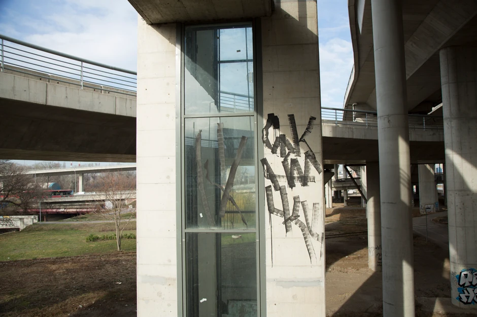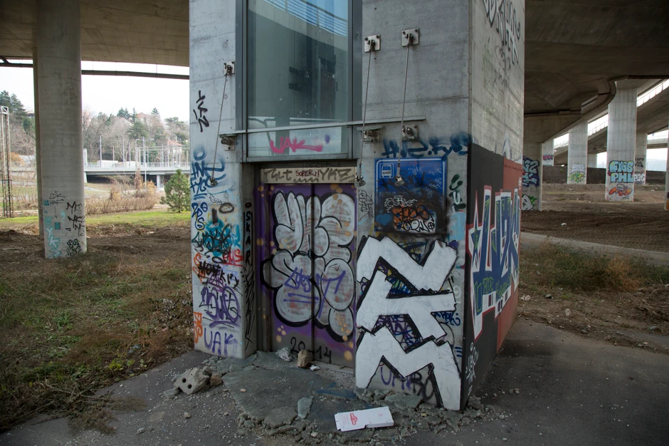 Sa čukaričke strane od podnožja se na sam most možete popeti samo pešačko-biciklističkim stazama ili stepenicama jer nijedan od liftova ne radi. A nema ni naznaka da će biti drugačije pošto je ceo prostor oko njih u potpunom neredu i haosu.