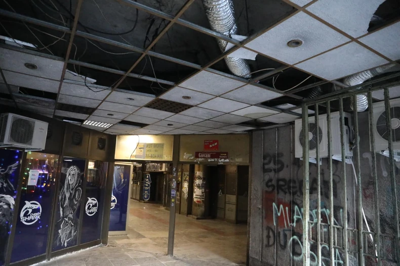 Plafon prolaza ispred hotela "Balkan" je potpuno ruiniran, ali sa druge strane, gotovo svi lokali i pokretne stepenice rade.