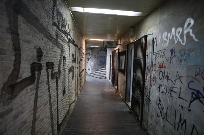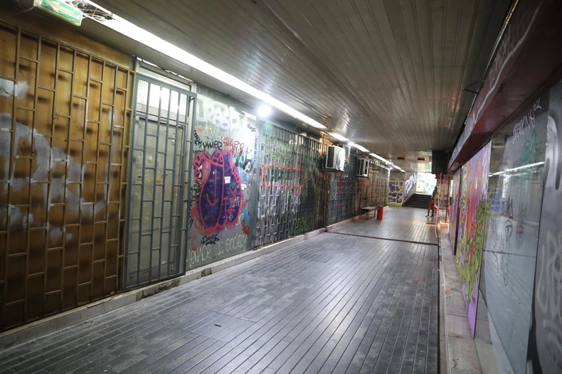 Oblepljen plakatima i ižvrljan grafitima, prolaz na Zelenom vencu je pored doma za nekolicinu beskućnika, i poslovni prostor preprodavcima odeće, kišobrana, nakita itd.