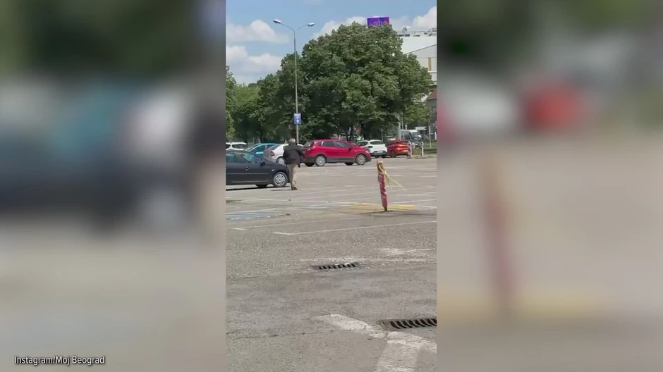 Na snimku sa društvenih mreža vidi se muškarac kako beži od vozila dok se čuje alarm.