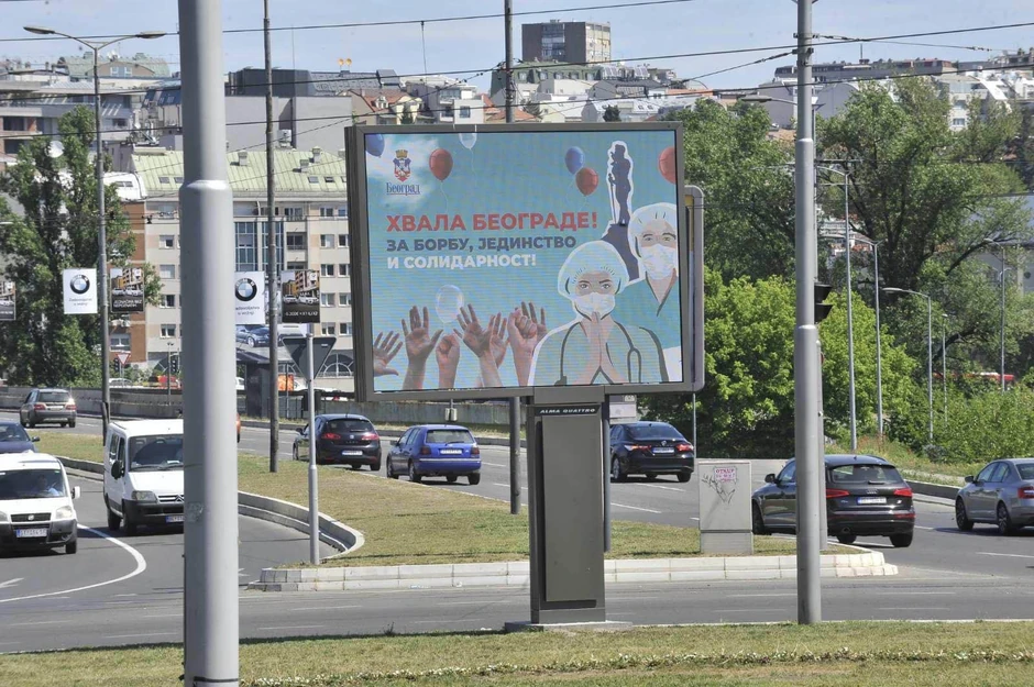 U Beogradu je danas na više od stotinu bilborda osvanula poruka zahvalnosti Grada Beograda građanima prestonice za podršku, borbu i jednistvo koje su iskazali sa zdravstvenim radnicima tokom borbe protiv virusa Kovid 19, izjavio je zamenik gradonačelnika Goran Vesić.