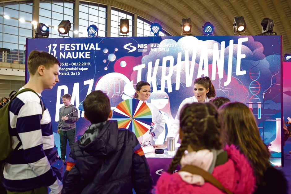 Kompanija NIS, koja je sedmu godinu zaredom generalni sponzor Festivala nauke, ove godine se predstavila postavkom „Znanje pokreće“, specijalno kreiranom da provede sve zainteresovane posetioce kroz pravu naučnu avanturu, kroz razotkrivanje zabluda i mitova kada je u pitanju energija, tema koja u velikoj meri utiče na naš svakodnevni život i predstavlja srž poslovanja kompanije. U ovom zanimljivom kutku, u Hali 3 Beogradskog sajma, svako ko je želeo mogao je da postane pravi istražitelj u okviru NIS Escape Rooma, gde je kroz timski rad, logičko zaključivanje i sposobnost razotkrivao misterije, a tačni odgovori vodili su do izlaza. Pored toga, posetioci su imali priliku da učestvuju u dva eksperimenta - sa letećim tanjirima i merenjem težine na planetama Sunčevog sistema.