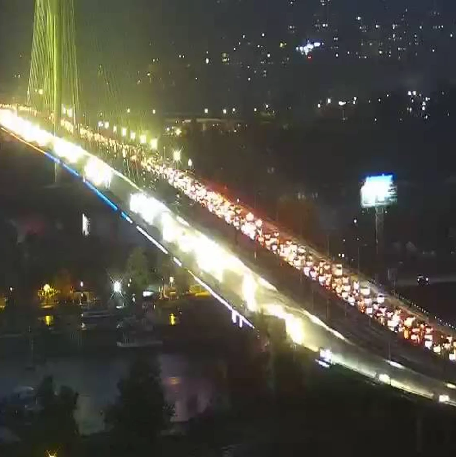- Pančevački most, nepregledna kolona iz pravca Pančeva ka Beogradu.
