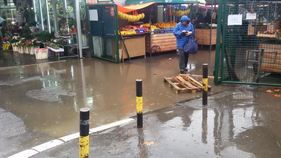 O tome uostalom najbolje svedoči ova fotografija na kojoj se vidi kako kupci moraju da prelaze preko improvizovanog "pontona", tačnije paleta, kako bi ušli na zelenu tržnicu. Za ostalo se pobrinula kiša koja je napravila mali bazen baš na samom ulazu.