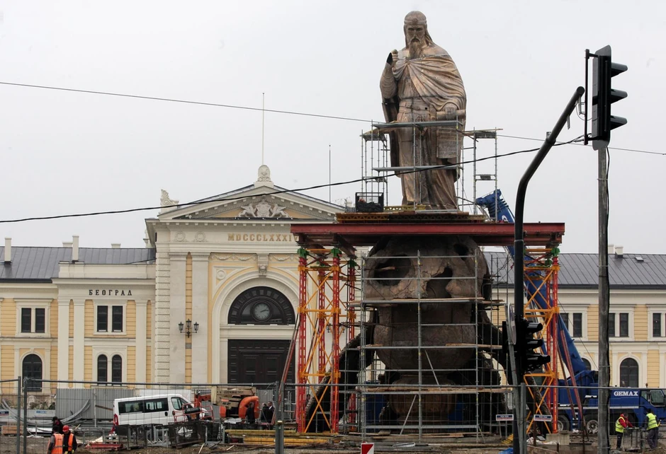 Spomenik Stefanu Nemanji, visok 23 metra i težak 68 tona, najvećim delom je postavljen na Savskom trgu, ali će radovi na njemu biti nastavljeni do kraja godine.