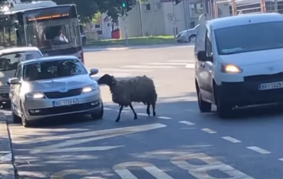 Ova ovca od jutros se očigledno izgubila, nije poznato kako je ovde dospela, ali se vidi da je uplašena i da ne može da nađe način da se izvuče iz jutarnjeg, prometnog saobraćaja.