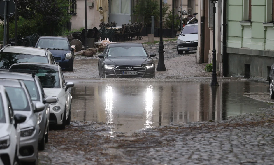 Na Autokomandi došlo je do kolapsa, a dva čoveka pokušavala su da izguraju automobil iz bujice.