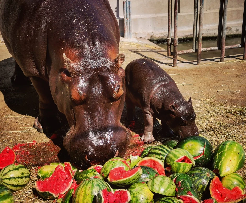 U utorak je "Vrt dobre nade" objalvio na svom zvaničnom Fejsbuk nalogu fotografiju prinove nilskog konja kako se sladi lubenicama uz mamu Julku.