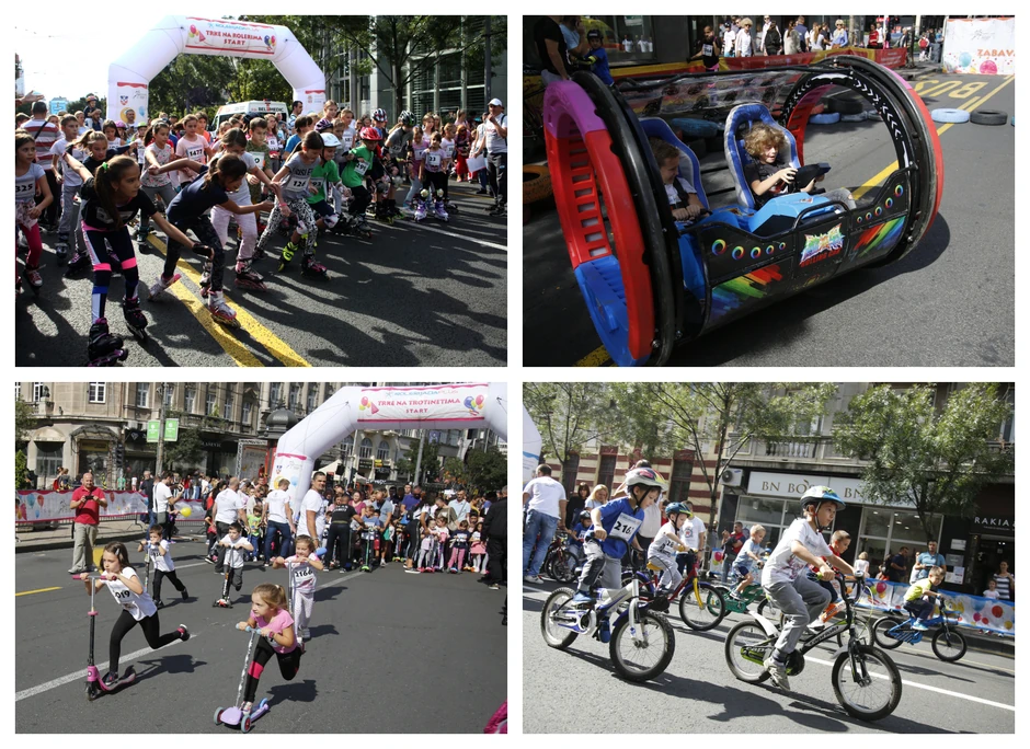 Na potezu od Terazija do Slavije okupilo se na stotine, pa čak i hiljade mališana svih uzrasta opremljenih rolerima, biciklima, trotinetima, autićima... pa još u pratnji mama, tata, baka i deka.