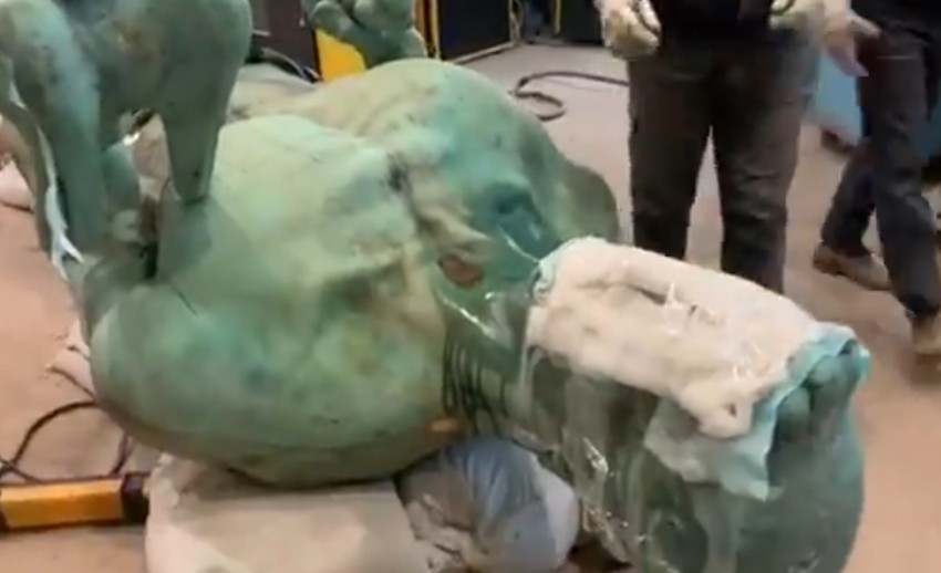 Kako bi uklonili crne kore sa bronzanog postolja koristili su metodu čišćenja suvim ledom, odnosno ugljen-dioksidom u čvrstom agregatnom stanju na temperaturi od čak -79 stepeni Celzijusovih.