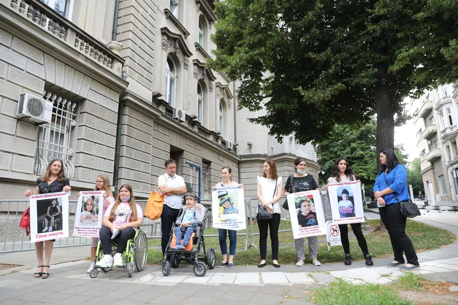 Mihailo (9), Nađa (9) i Anđela (13) zajedno sa svojim i roditeljima druge dece koja boluju od opake i rekte bolesti - spinalne mišićne atrofije (SMA), okupili su se jutros ispred zgrade Predsedništva Srbije kako bi podsetili državni vrh na problem sa kojim se bespomoćno bore - dugo i nezivesno čekanje na terapiju.