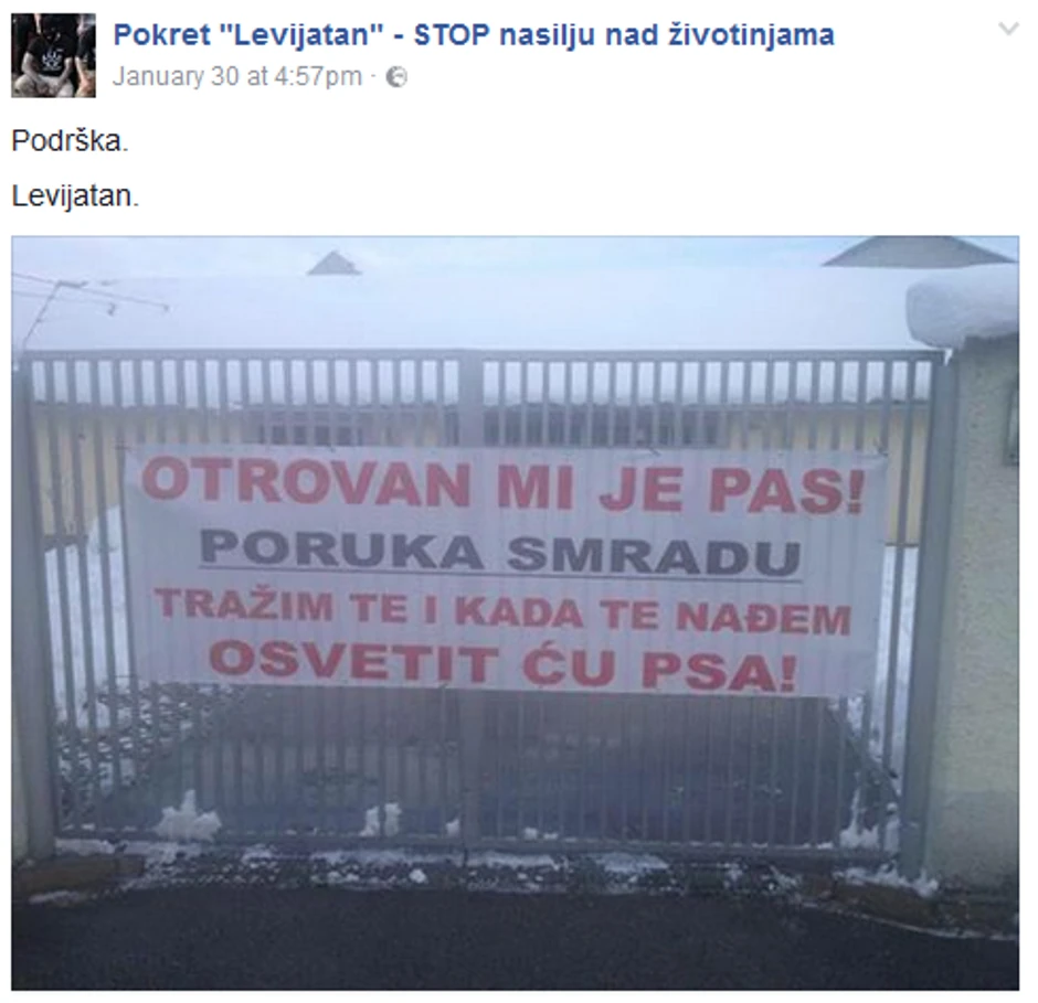 "Ne diraj životinje, naći ćemo te", glasi slogan udruženja "Levijatan", pokreta koji za sebe tvrdi da brine o napuštenim i zlostavljanim životinjama. Grupa istetoviranih mladića, sakrivenih iza fantomki, poziraju na slikama u majicama ovog udruženja i prete mučiteljima životinja da se "neće dobro provesti" ako ih oni pronađu.