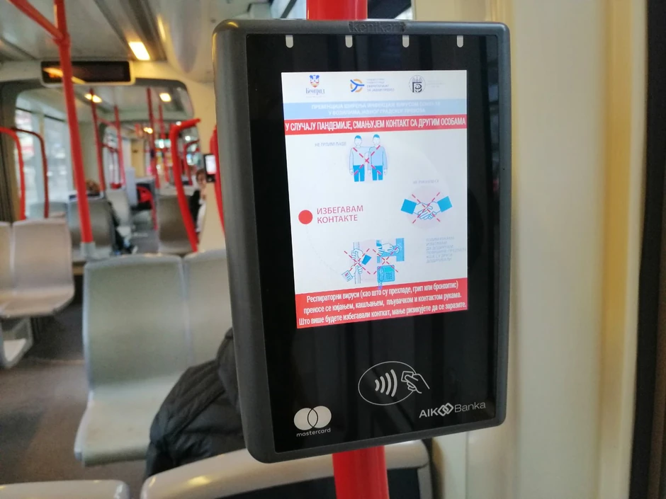 Ukoliko priđete da validirate svoju karticu ili proverite koliko vam je stajališta ostalo do odredišta, videćete obaveštenje koje vam savetuje da u slučaju pandemije smanjite kontakt sa drugima.