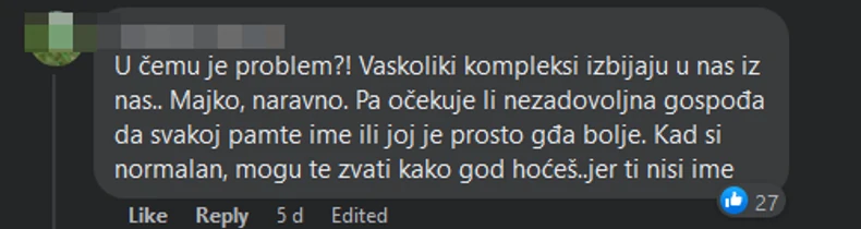 I dok su neki potpuno podržali njen stav, bilo je i onih koji su se složili da je oslovljavanje sa "majko" u najmanju ruku iritantno i ponižavajuće, ali su osudili stav autorke objave i njen način komunikacije.