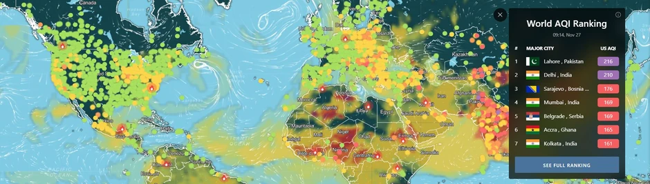 Kada je reč o stepenu zagađenosti najvećih gradova na svetu, Beograd je u 8.25 zauzimao četvrtu poziciju sa indeksom zagađenosti 170. Ispred naše prestonice su samo Sarajevo, Delhi i Lahore.