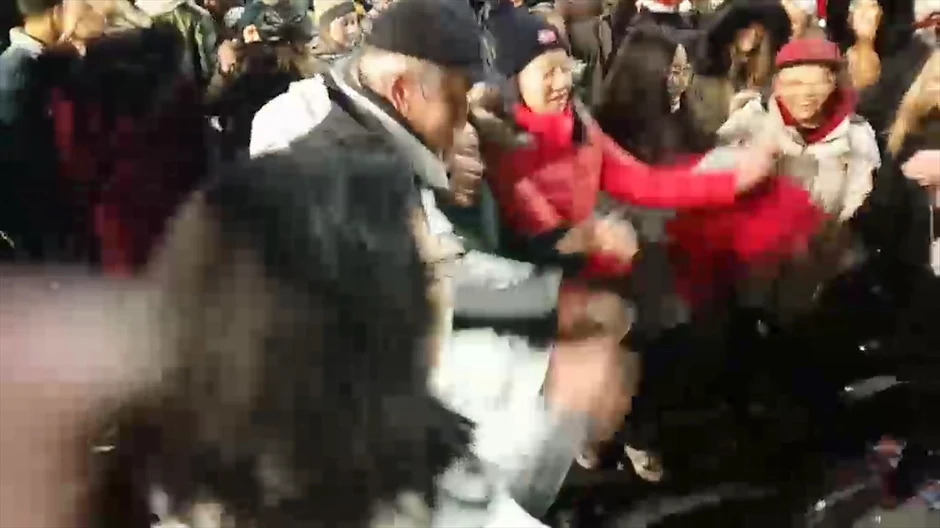 Petominutni vatromet oduševio je masu pred Domom Narodne skupštine, prštali su poljupci, zagrljaji, a osmehe kad je sat otkucao ponoć, čini se, niko nije skidao s lica. Kada su trubači zasvirali "Vidovdan", gotovo da nije bilo osobe koja je igrala kolo, a pridružile su im se i - Kineskinje!